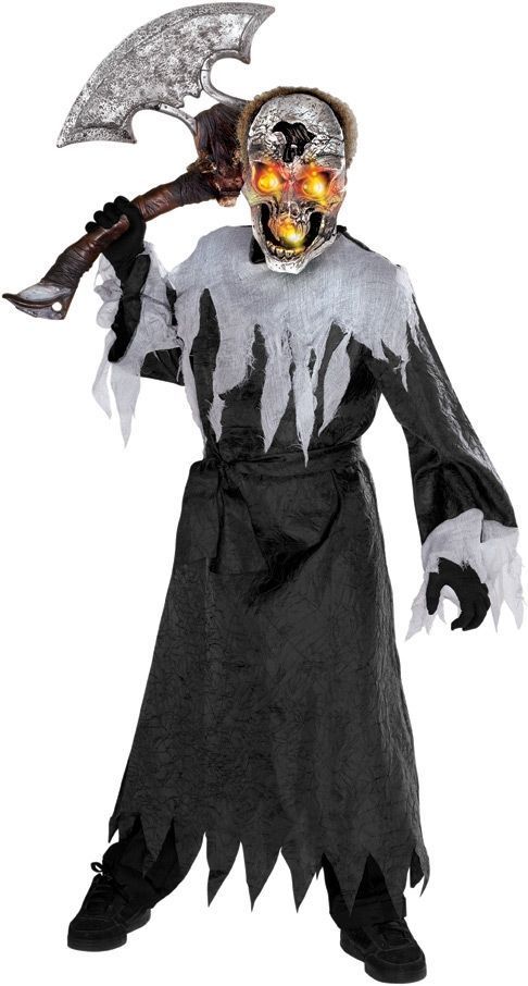 Для того чтобы превратиться в злодея достаточно купить костюм горящего черепа. Костюм включает в себя халат с воротником и рваными манжетами, пояс и маску с горящими вспышками. Оружие в комплект не входит.Рекомендации по уходу: Только чистка по месту загрязнения.