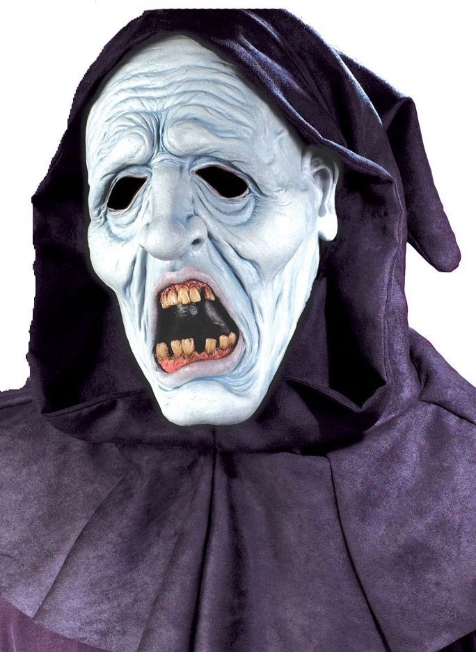 Голубая маска вурдалака выполнена в голубом цвете, с чёрным капюшоном. Множество морщин, открытый рот, откуда виднеются кривые жёлтые зубы. Маска прекрасно подойдёт для маскарадов, вечеринок и Хэллоуина.