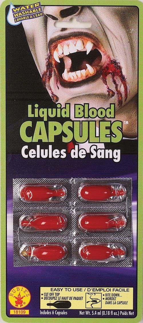 Набор капсул с кровью оптимально дополнят костюмы вампиров а так-же порадуют всех почитателей крови. "Кровь" из капсул легко смывается водой.Рекомендации по уходу: Только чистка по месту загрязнения.