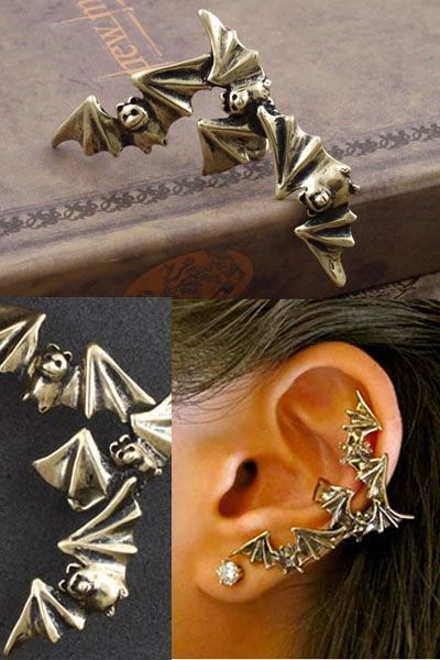 Кафф для уха Летучие Мыши - это красивое украшение для уха, которое станет прекрасным дополнением к костюмам летучих мышей, ведьмочек и других нарядов. Кафф представляет собой трех летучих мышей, он одевается на боковую поверхность хряща. Его можно носить как на левом, так и на правом ухе.