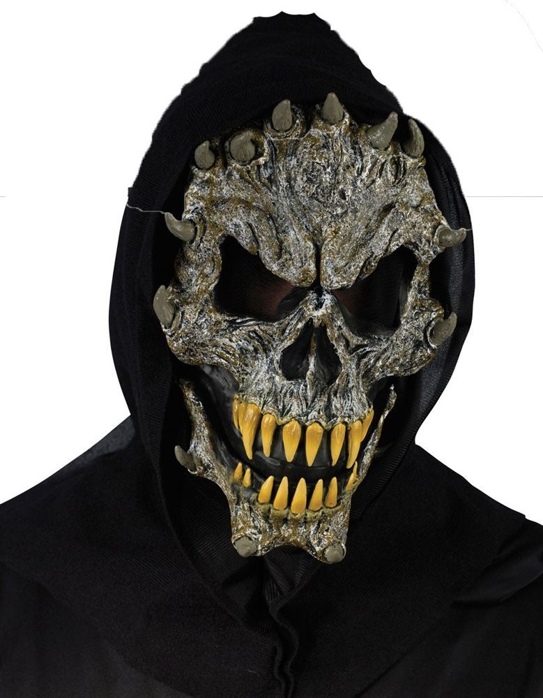 Маска клыкастого Черепа представляет собой латексную маску в серо-коричневых тонах, с жёлтыми огромными клыками, небольшими рожками, торчащими из головы и лица. Большие сетчатые вырезы для глаз выражают очень злой взгляд. К маске прикреплён чёрный капюшон. Эту маску можно носить не снимая долгое время и она не будет доставлять дискомфорт.