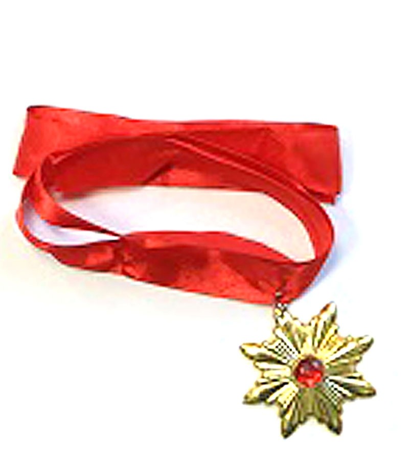 Медальон Дракулы - отличное дополнение к образу известного вампира Дракулы. Медальон выполнен в золотистом цвете, он крепится к красной атласное ленте.