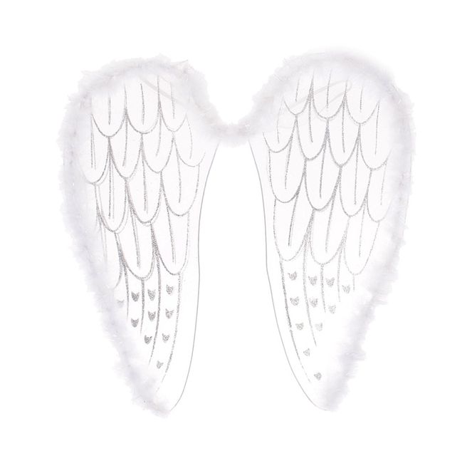 Белые крылья ангела с блестками помогут Вам создать образ светлого ангела на костюмированной вечеринке или утреннике. Крылья обильно украшены серебристыми блестками и белым пухом по краям. Размер 36 × 32 см.