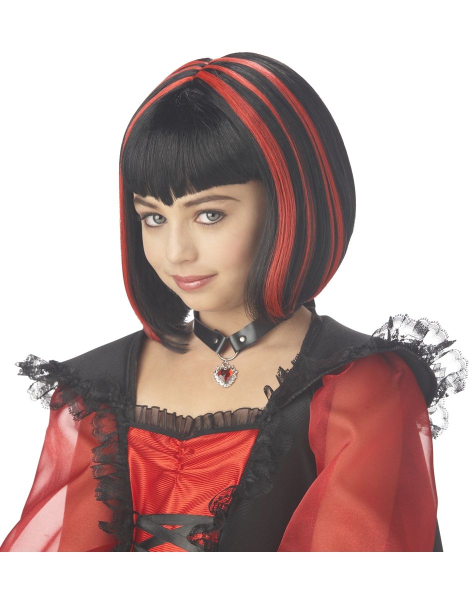 Парик величественной вампирши детский черного с красным цветов дополнит детские костюмы вампирш, ведьм и подобных персонажей, а так-же послужит отличным подарком.Рекомендации по уходу: Только чистка по месту загрязнения.