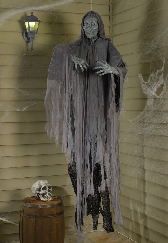 Подвесной вурдалак представляет собой подвесную фигуру с окаменелым лицом и руками, вурдалак одет в рваный плащ серо-чёрного цвета. Эта подвесная фигура сможет послужить пугалом от незваных гостей, а также украшением для вашего дома на Хэллоуин.