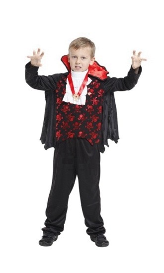 Детский костюм короля вампиров станет беспроигрышным выбором для празднования Хэллоуина и других тематических мероприятий. Костюм выполнен в черно-красной гамме и включает в себя рубашку, черные брюки, плащ, белую манишку и ленту на шею.