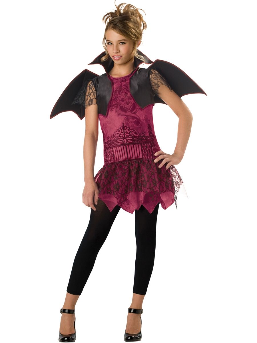 Костюм летучей мыши модницы состоит из: платья с рисунком и многослойной юбкой, черного болеро, крыльев и леггинсов. Костюм можно надеть на вечеринку Хэллоуин или пятница 13.