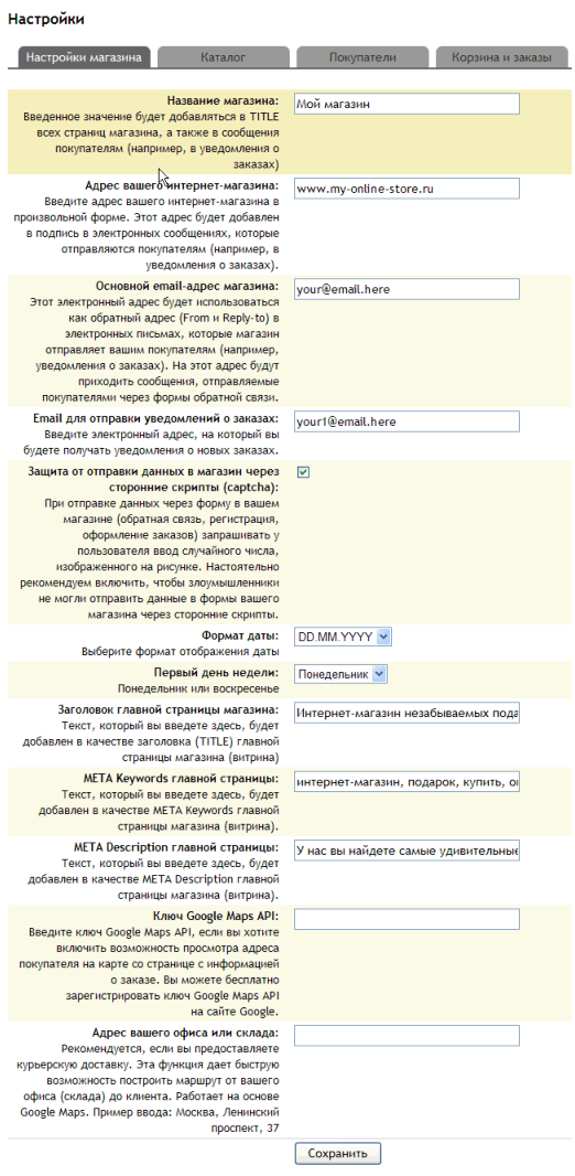 Настройки